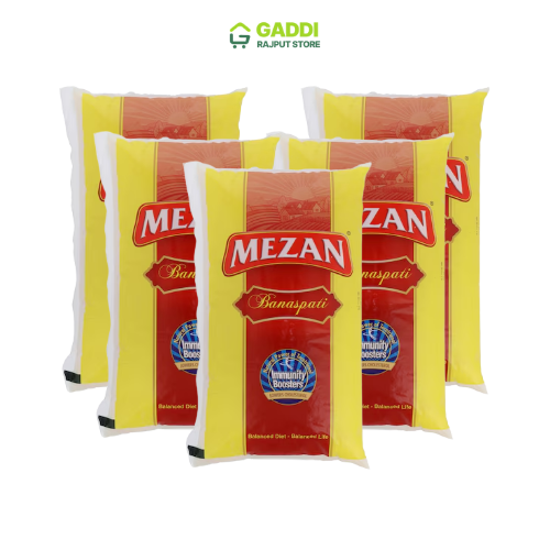 Apni monthly grocery ko smartly manage karein with Mezan Banaspati Ghee 1Kg Each, 5-Pack, Rich aroma aur desi taste jo parathay, halwa aur everyday cooking ke liye perfect hai. 100% original Mezan Ghee hygienically packed, aur ab family value pack sirf Rs. 2,800 mein available with same day delivery across Karachi 🚚